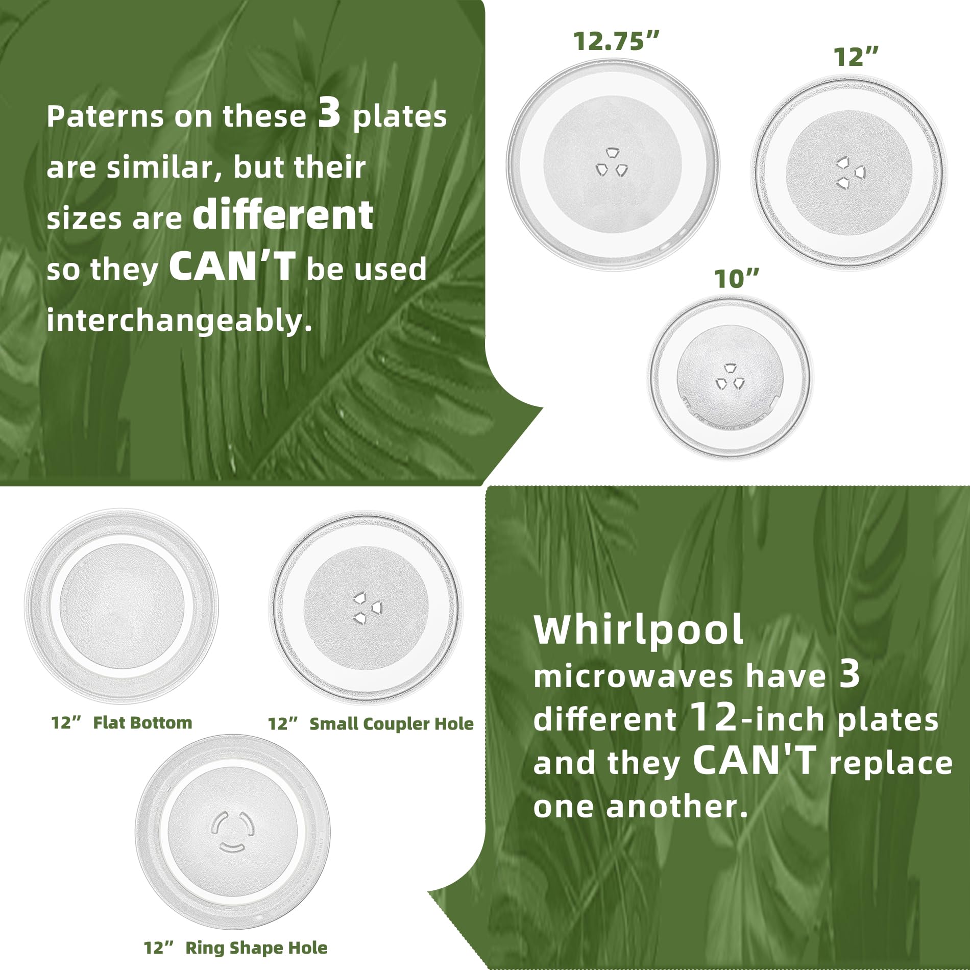 12" Whirlpool Microwave Glass Plate Replacement W11367904 W11291538 W10337247 W11443145, Compatible with Whirlpool Microwave Glass Turntable Plate WMH31017 WML55011 Whirlpool 12 Inch Microwave Plate